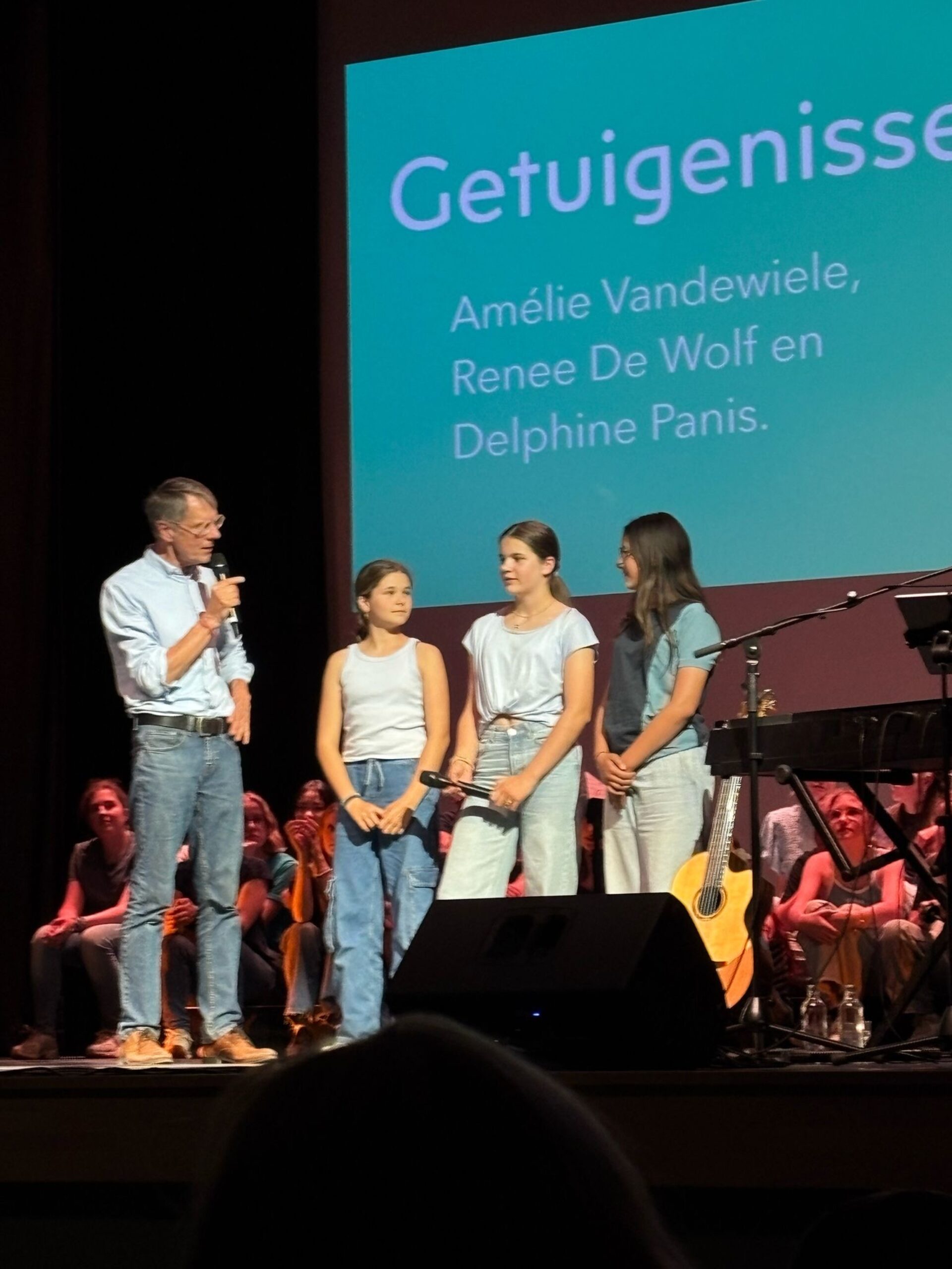 Om dit mooie traject feestelijk af te sluiten, organiseerden we een uniek I-WAVE-festival in onze Groenzaal. We zijn bijzonder trots dat we Ingeborg mochten verwelkomen als gastartieste en dat ons pop-upkoor, bestaande uit maar liefst 70 leerlingen en leerkrachten onder leiding van Annelies Van Hemelen, schitterden op het podium. Het was een hartverwarmende avond met pakkende getuigenissen, samenhorigheid en sfeervolle muziek. Achteraf werd er nog nagenoten met een drankje.